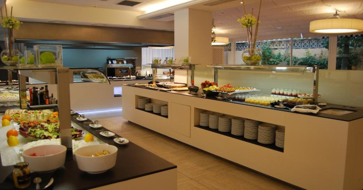 Hotelul ofera demipensiune si pensiune completa, toate mesele tip bufet. Hotelul are un restaurant tip bufet cu seri tematice in fiecare sambata si un cafe-bar. Cafe-clubul Les Palmeres situat la 40 m de intrarea principala in hotel ofera bauturi si brugeri gourmet.