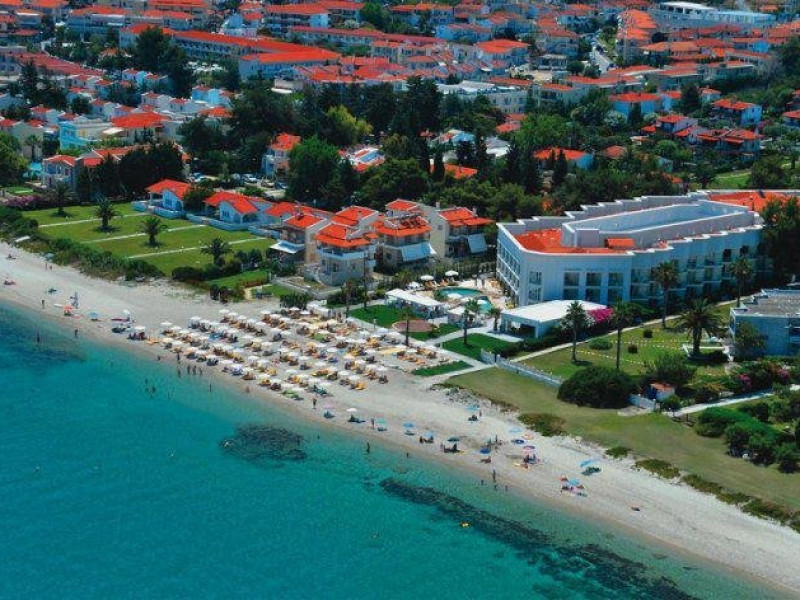 Localizare: Noul hotel Elinotel Apolamare este situat in Hanioti si a fost deschis in anul 2009. Construit in stil baroque cu un design tip boutique reprezinta principalele acestui hotelpe plaja. Facilitati hotel: Hotelul Elinotel Apolamare 5* din Hanioti se afla intr-o zona unde apa cristalina a golfului Toroneos, impreuna cu plaja, creeaza un cadru natural feeric, pentru petrecerea unei vacante de vis la malul marii Egee. Plaja cu nisip se intinde la dreapta si la stanga, fiind loc de joaca pentru copii in timpul zilei si loc de promenada in timpul serii. Hotelul dispune de: piscina exterioara, plaja privata, receptie deschisa 24 de ore, bar, lounge, rent a car, exchange, internet WiFi la receptie, loc de relaxare, restaurant, room service, piscina pentru copii, mini club, pool bar si parcare. Ultra All Inclusive la Elinotel Apolamare 5*: pe plaja hotelul ofera sezlonguri, umbrele si prosoape - gratuit. Prosoapele de plaja se iau de la pool bar. piscina hotelului poate fi folosita intre 09.00-18.00. Sunshine Pool Bar este deschis intre 09.00-01.00 si se servesc diverse bauturi alcoolice si racoritoare, bere, cocteiluri, cafea, ceai si sucuri. Intre 11.00-12.00 si 15.00-18.00 se servesc gustari, prajituri si ceai. Pana la ora 23.00 barul este deschis pentru oferta Ultra All inclusive iar intre 23.00-01.00 produsele consumate sunt contra cost. la restaurantul El Greco, situat la parter, se servesc: micul dejun (07.00-10.00), pranzul (12.30-14.30) si cina (19.00-21.30), in sistem bufet suedez. Lunea este zi greceasca, joi zi italieneasca iar sambata zi asiatica- sala de fitness poate fi folosita intre 10.00-14.00 si 17.00-22.00 de toate persoanele cazate in hotel ce au peste 16 ani. -Club & Bar Elite este deschis intre 220.00-23.00 pentru programul Ultra All Inclusive iar intre 23.00-02.00 produsele consumate sunt contra cost. Restaurantul, barul de pe plaja si barul Elite ofera o selectie de vinuri si bauturi speciale. Aceasta selectie se gaseste intr-un meniu separat din care se pot comanda bauturile, contra cost. In extrasezon, programul de functionare al diferitelor unitati din cadrul hotelului poate fi diferit fata de orele afisate mai sus. Facilitati camere: Hotelul ofera cazare in cele 87 de camere tip boutique. Toate camerele sunt spatioase, decorate cu gust si sunt echipate pentru a crea un confort maxim. Camerele au in dotare: grup sanitar propriu cu cada sau dus, oglinda pentru machiaj, feon, telefon, TV LCD, minibar, aer conditionat individual cald/rece, seif si balcon. Camerele duble au aproximativ 24-27 de metri patrati si sunt ideale pentru cazarea a doi adulti sau doi adulti si un bebelus. Pentru bebelus se ofera baby cot gratuit, la cerere. Camerele duble superior au aproximativ 27-30 de metri patrati si pot caza 3 adulti sau 2 adulti si 2 copii. Acestea au pat dublu si canapea extensibila. Camerele family au 35-37 de metri patrati si sunt formate dintr-o camera spatioasa formata din loc de relaxare cu canapea extensibila si loc de dormit. Cele doua zone sunt despartite prin usa culisanta. Apartamentele family (family suite) au vedere spre gradina, aproximativ 44 de metri patrati si sunt formate din 2 dormitoare separate. Pot caza maximum 4 persoane. Apartamentele de lux au vedere spre mare, aproximativ 60 de metri patrati si sunt ideale pentru persoanele aflate in luna de miere sau intr-o calatorie romantica. Au baie cu cada si dus, loc de relaxare si dormitor cu pat matrimonial. Patul suplimentar in apartament este un pat pliant. Patul suplimentar in camera dubla superior, in camera dubla family si in apartament este canapea sau pat pliant. Website: http://www.apolamare-hotel.com