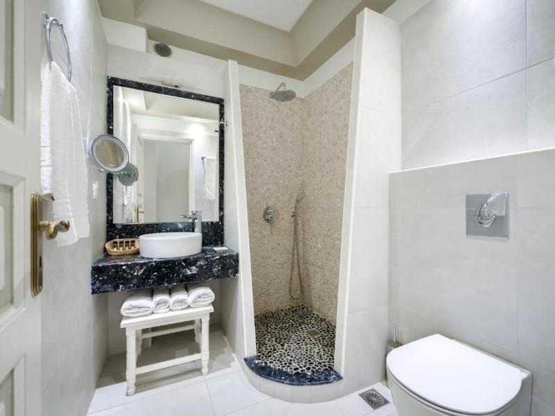Dotari camere: in cladirea principala camerele sunt mai vechi; mai noi sunt in anexa construita de curand (paturi cu baldachin) si sunt dotate cu baie proprie cu dus/perdea, TV satelit, aer conditionat, terasa cu scaune si masuta, pat pentru bebe (la cerere), frigider, uscator de par, seif, radio .